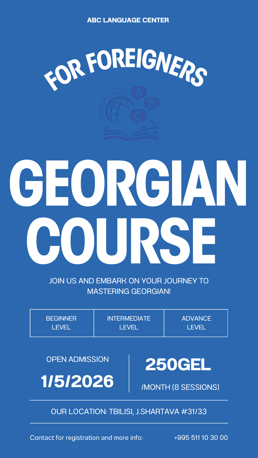 This course is designed especially for foreigners who want to learn Georgian starting from English. Whether you are a complete beginner or already know some basics, you will receive structured and practical lessons.